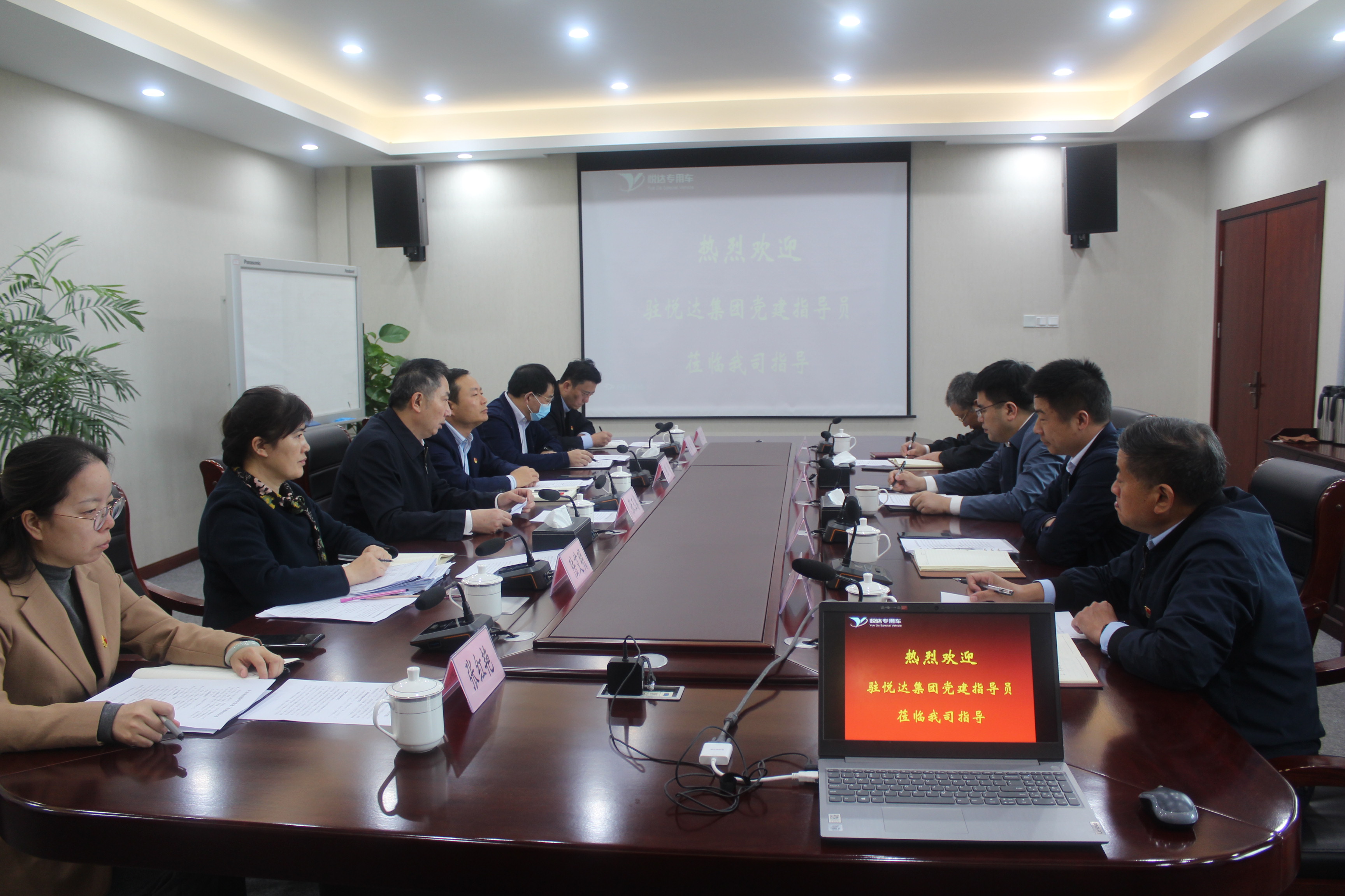 10月27日下午,市委派驻悦达集团党建工作指导员张玉春一行到专用车公司开展党建工作专项调研。公司党支部书记、董事长赵山虎汇报企业有关生产经营及党建工作方面情况。